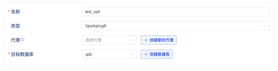 代理 是非必填项,如有需要,可以在下拉框中选择指定的代理,也可以先点击右侧的 +创建新的代理 按钮