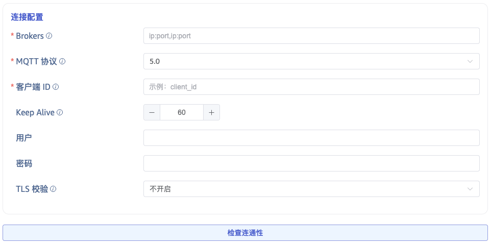 在 MQTT 协议 中选择使用的 MQTT 协议版本,默认 5.0 版本。
