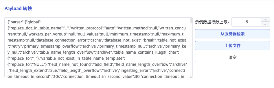 在 Payload 解析 区域填写 Payload 解析相关的配置参数。
