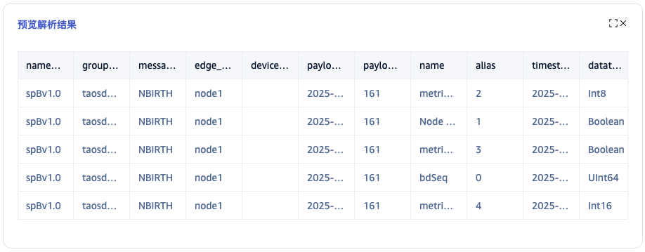 json 数据支持 JSONObject 或者 JSONArray,可以用于解析 SparkplugB 中的 metadata 和 properties 等 json 格式的字段。